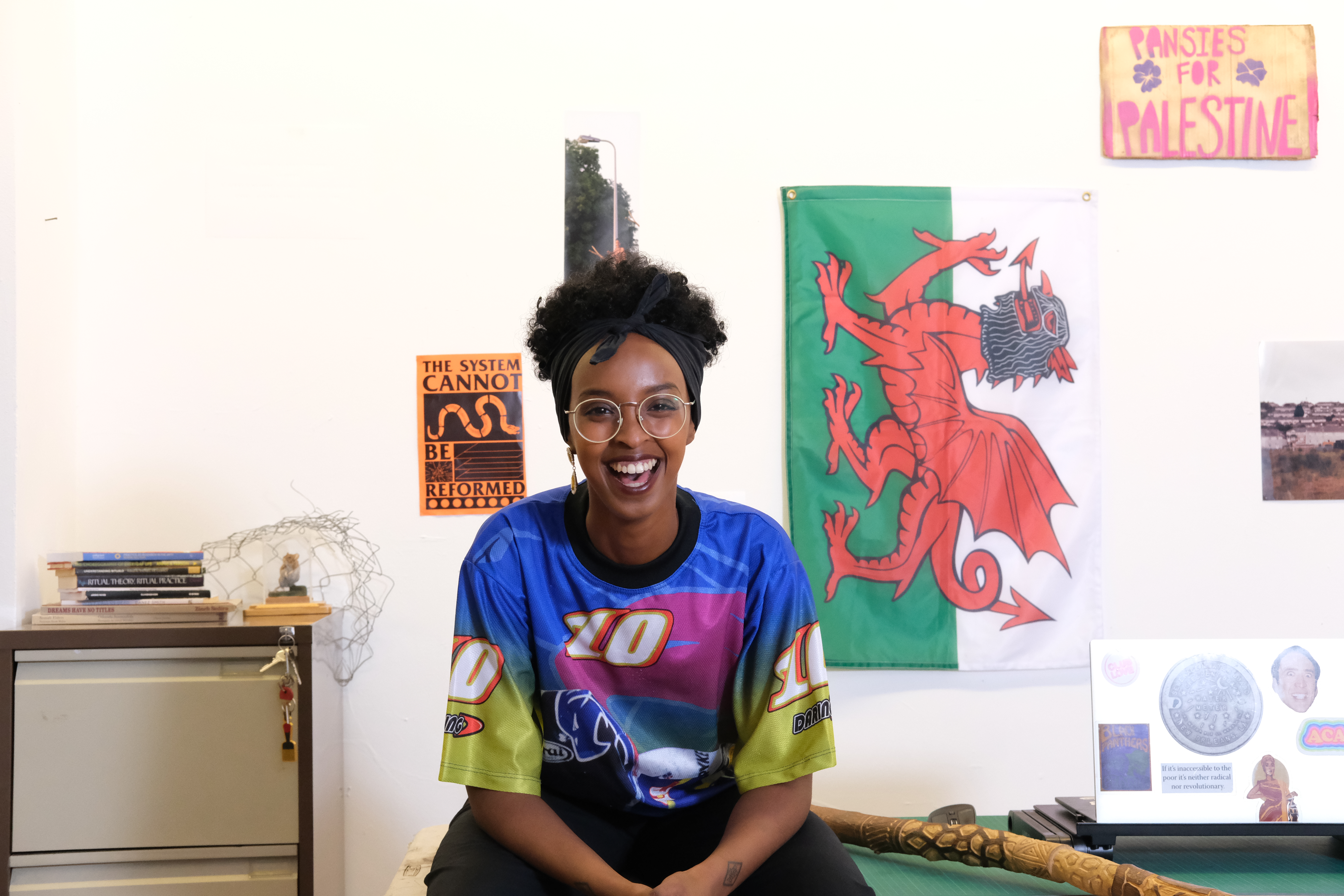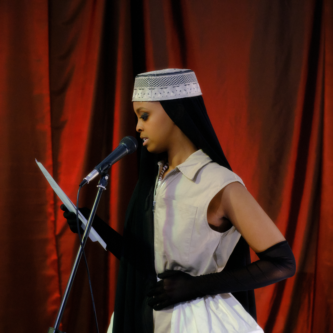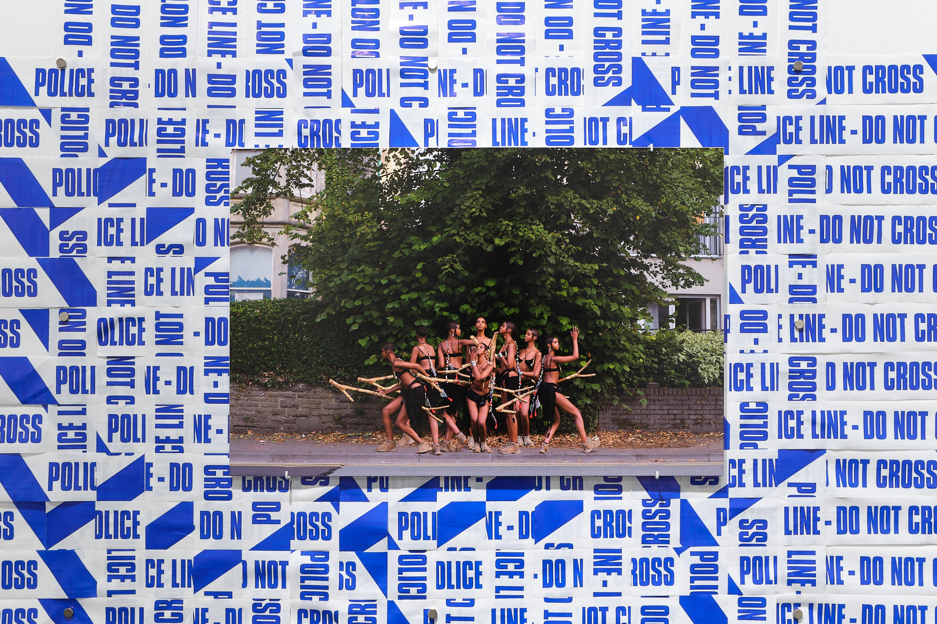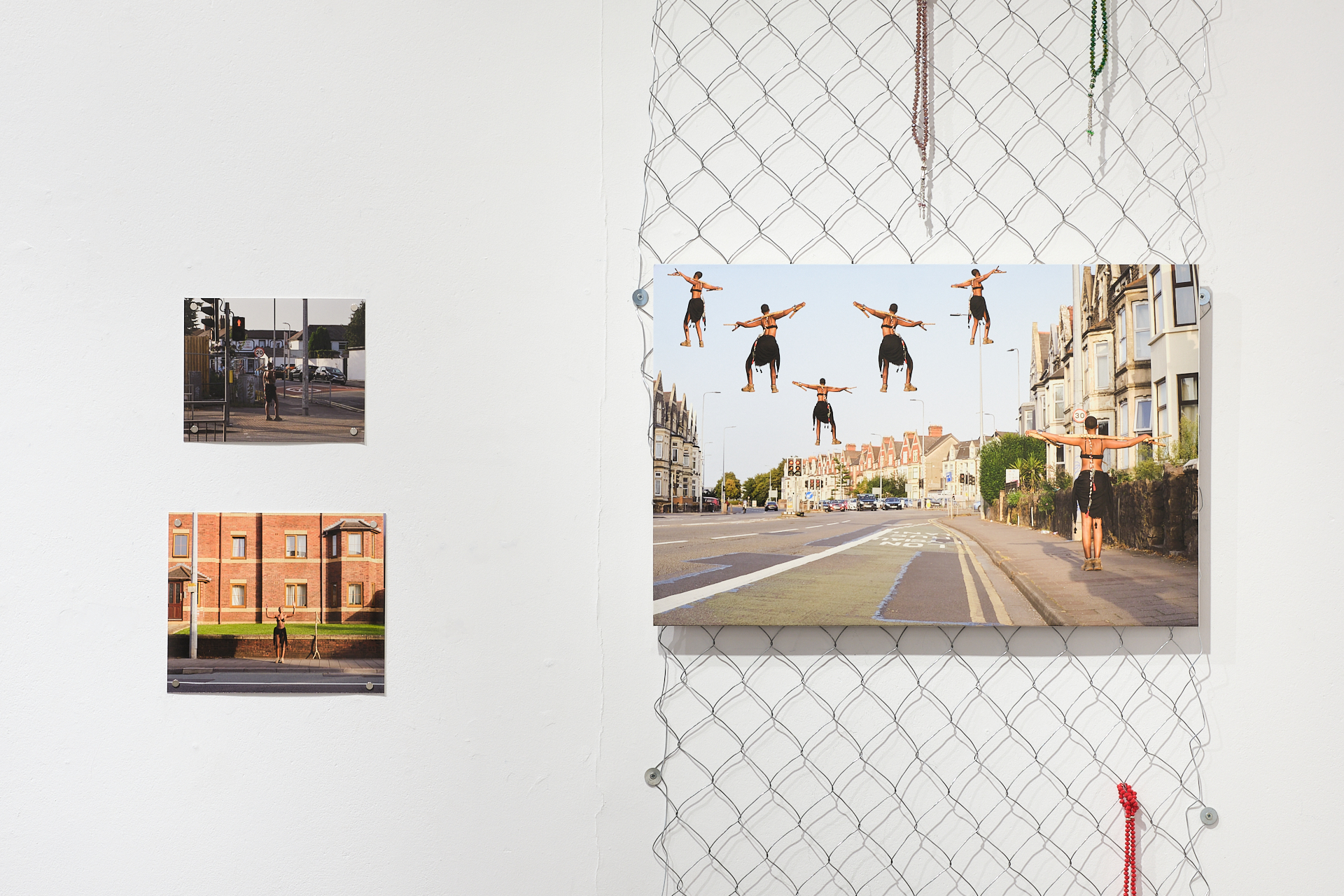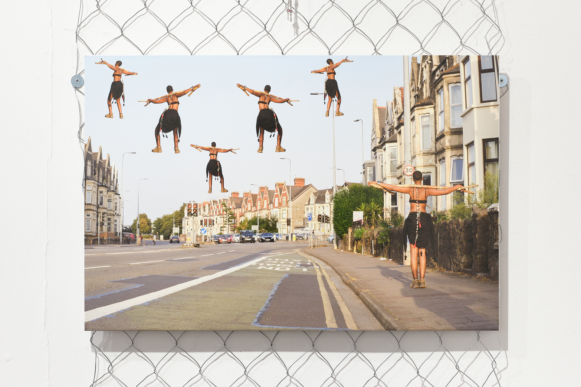 The performance was a ritualistic reclamation of space, in response to the racialised policing of Black migrant dock workers in Cardiff. The photographic works in this series seek to make the presence of ancestors visible, featuring multiple depictions of Ajnabi within each image, symbolising their presence. Their works in this exhibition emphasise the legacies of colonial policing in the UK whilst honoring the ancestors who anchor the series.